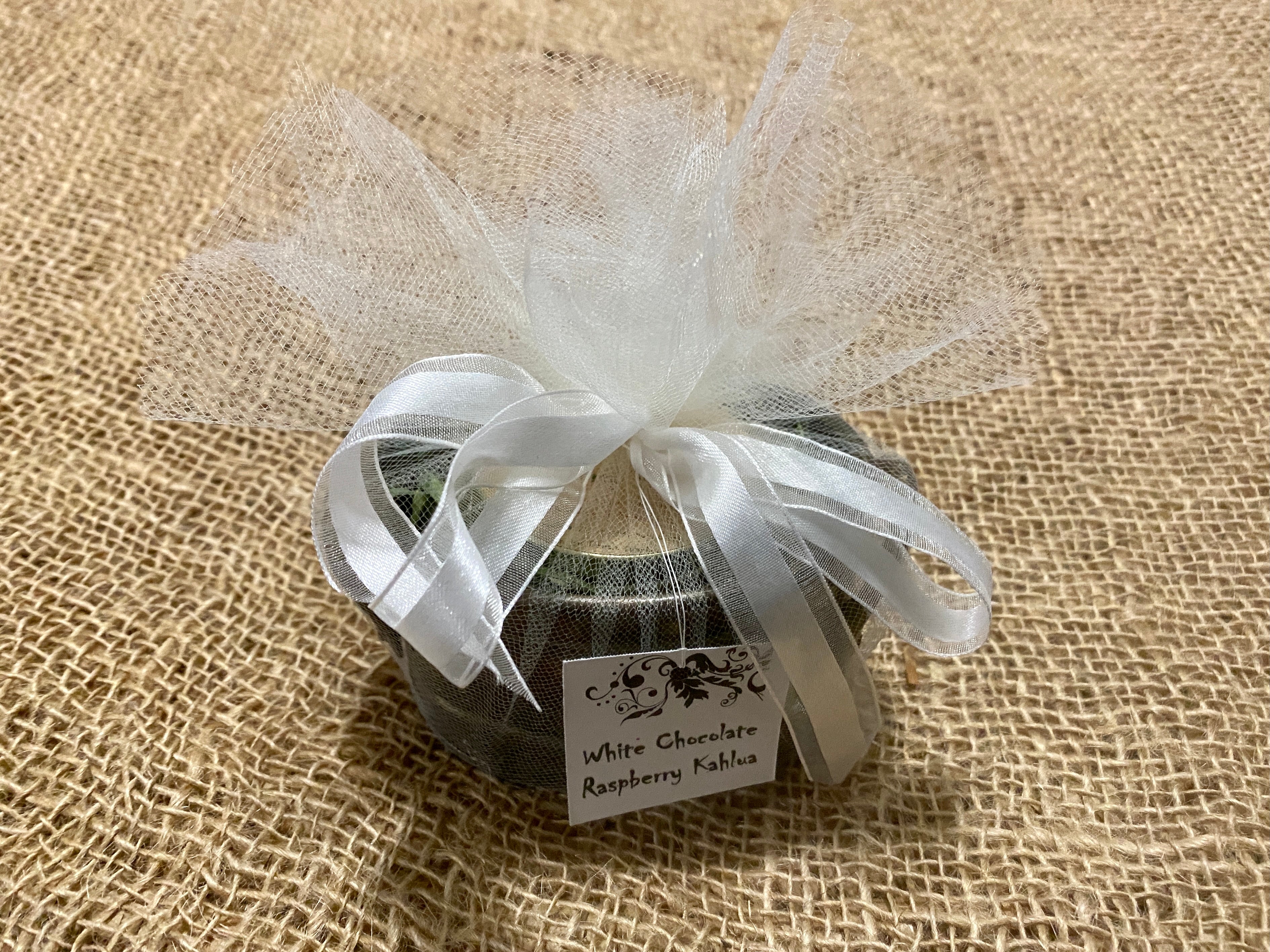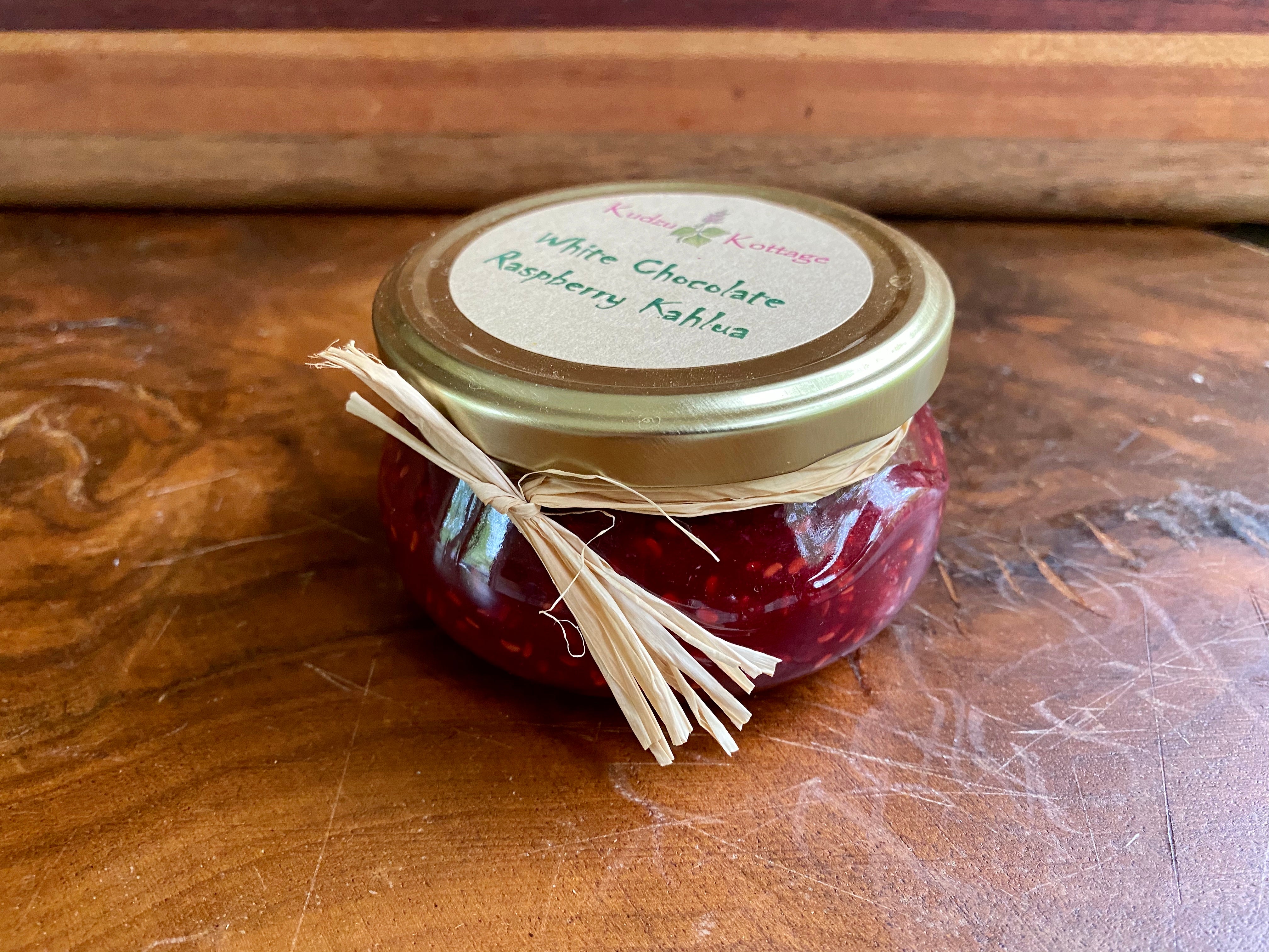 Ingredients: Raspberries, pure cane sugar, Ghiradelli white chocolate and kahlua.