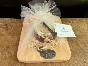 This unique hardwood board with a metal bird nest motif and matching spreader features one 7 oz jar of Kudzu Kottage Hummingbird jam (cherries, bananas and pineapple).